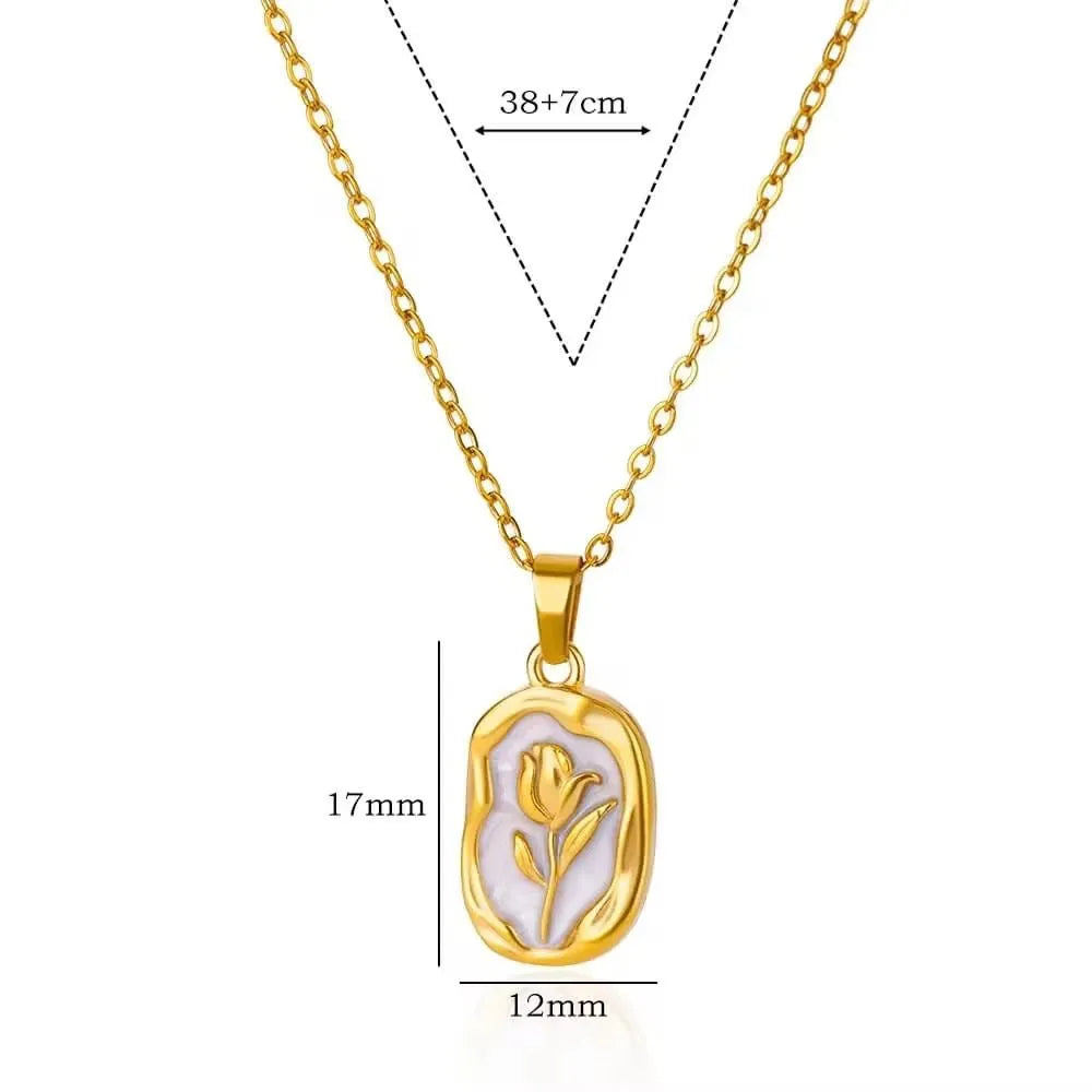 Add a touch of timeless elegance to your look with this Gold-Plated Tulip Flower Pendant Necklace. Featuring a delicately engraved tulip design on a smooth enamel base, this dainty necklace beautifully blends minimalism with sophistication. Perfect for everyday wear or special occasions, it makes a thoughtful gift for birthdays, anniversaries, or Valentine’s Day.