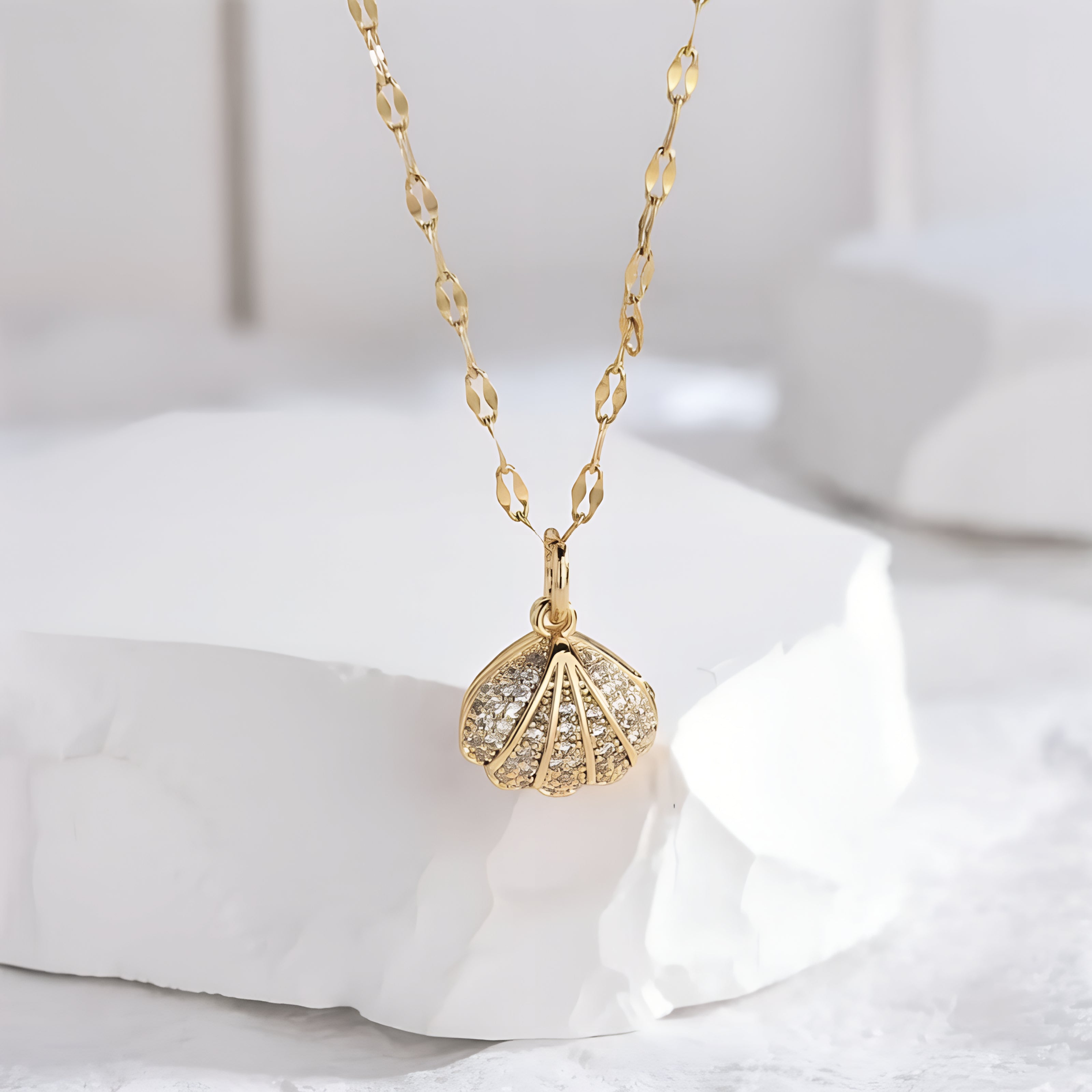 This elegant shell pendant necklace captures the essence of seaside beauty and serenity. Whether paired with summer outfits or elegant evening wear, it brings a touch of coastal elegance to every look.